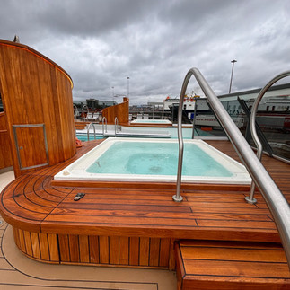 The morning began as we were welcomed on board by sales & marketing Calli she brought us past the most amazing fire place in The Square expedition lounge are that resembled a ski lodge - sumptuous seating and a really cosy atmosphere that I could easily see me settling in for the day with a book and a glass in hand enjoying the luxury surroundings