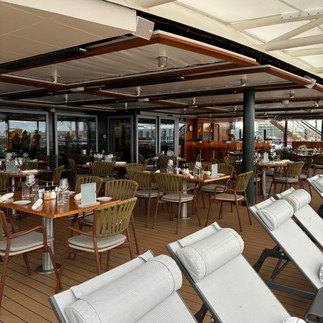 Next we settled in the lovely area of the Constellation Lounge offering fabulous veiws from the panoramic windows we were treated to morning mimosas a taste of the luxury onboard in this all inclusive ship.